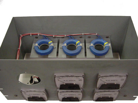 panel. Three AC ammeters (rated 5 amps full-scale deflection