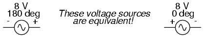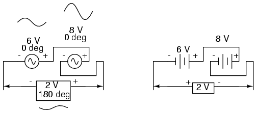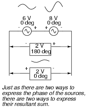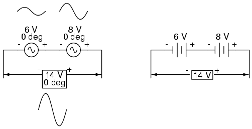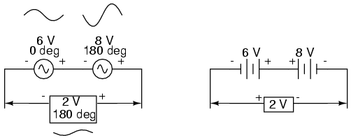 The result, of course, is a total voltage of 2 volts.  We could have just as well shown the