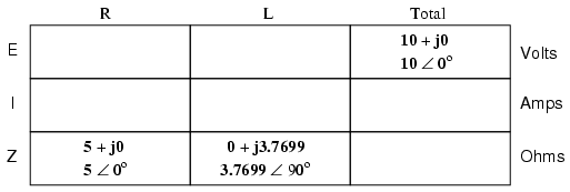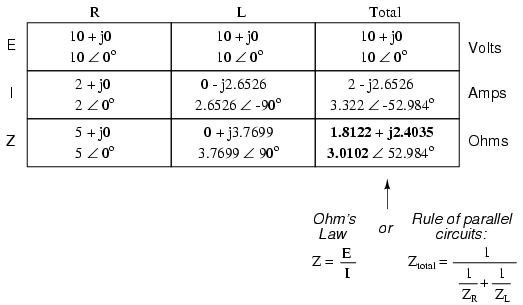 by using Ohm's Law (Z=E/I) vertically in the "Total" column.