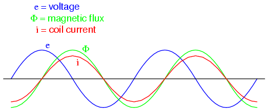 in the iron core) and hysteresis (power lost due to