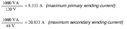 expected values of primary and secondary winding current