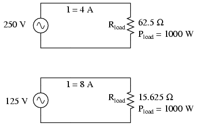 current to different levels, and because power is