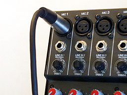 Preamp Cable, an XLR splitter cable, and a Mackie mixer.