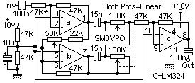 Potentiometer controls the notch frequency and has a