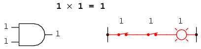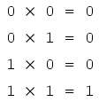 multiplication corresponds to the logical function of an "AND" gate, as well