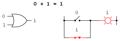 Boolean addition corresponds to the logical function of an "OR" gate, as