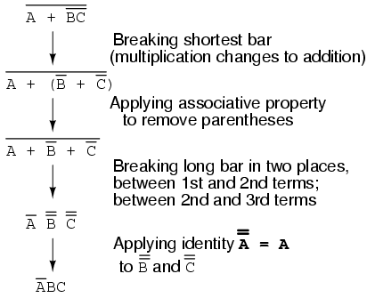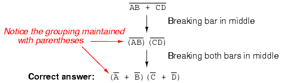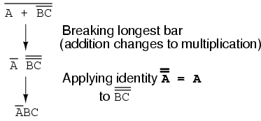 of DeMorgan's theorem. Since a long bar functions as a grouping symbol, the