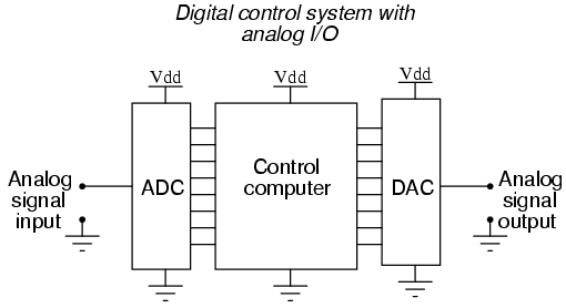 and visa-versa. An analog-to-digital converter, or ADC, performs the