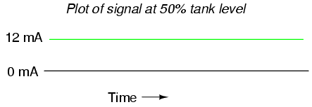 device with an output signal of 4-20 mA. 4 mA represents a tank level of 0%,