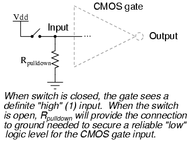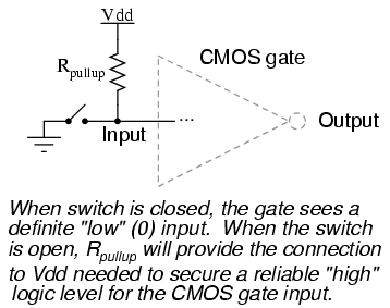 floating. Pullup and pulldown resistors are used to prevent a CMOS