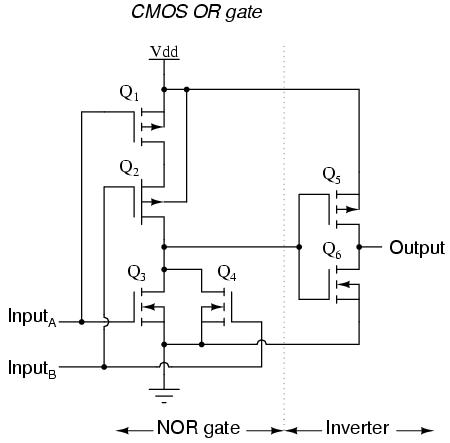 course, defines the NOR logic function.  The OR function may be built up from the basic NOR gate with the addition