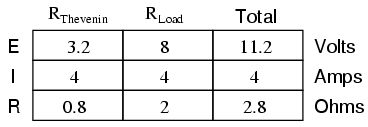 and R3 in parallel: 0.8 Ω. This is our "Thevenin