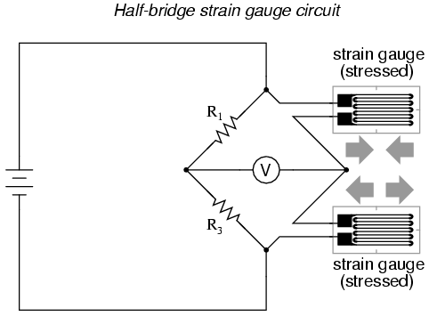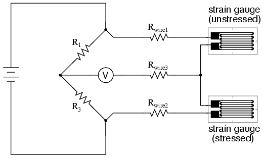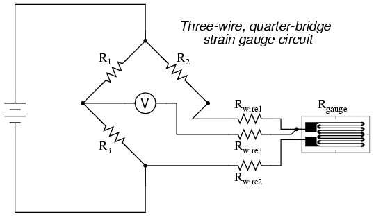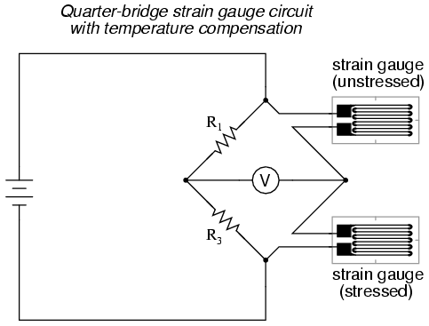 quarter-bridge circuit.  As the distance between the strain gauge and