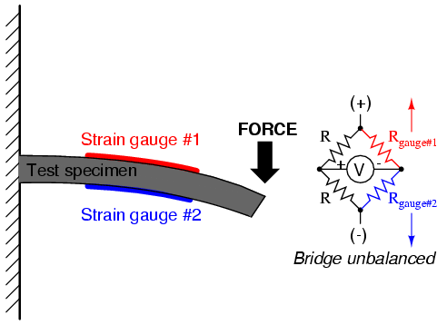 Strain gauge resistance changes are