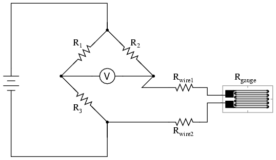 strain gauge, leaving only the lower wire's resistance (Rwire2)
