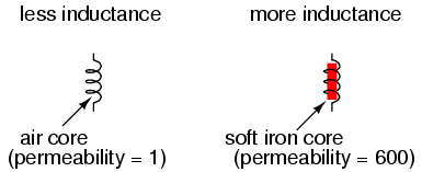 inductance; the less the permeability of the core, the less