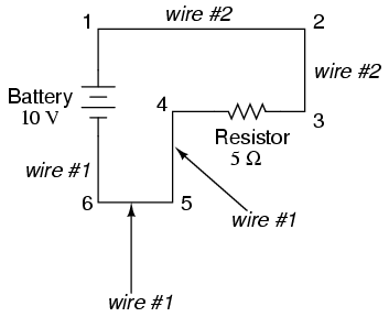 together by wire. The same goes for points 4, 5, and 6.  The voltage between points 1 and 6 is 10