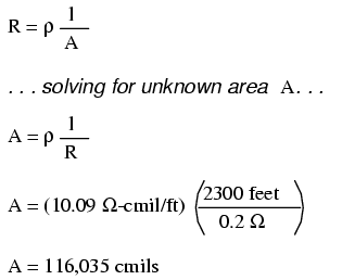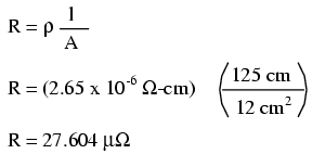 2.65 x 10-6 Ω-cm. Setting up our R=ρl/A formula,