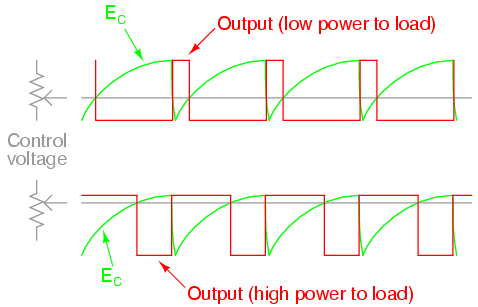 duty cycle from 0% to 50% to 100%. Varying the duty cycle