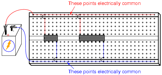 you use a breadboard with power supply "rail" connections