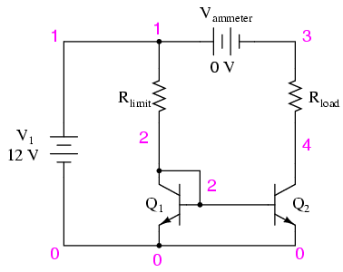 mirrors the current through Q1.  Changes in load resistance (resistance