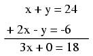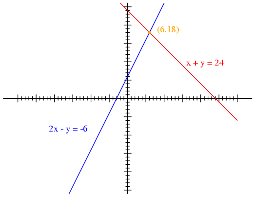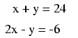 functions x + y = 24 and 2x - y = -6