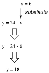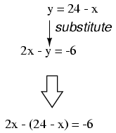of y, which is 24 - x and substitute this