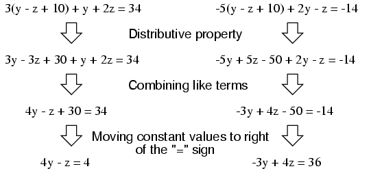 from three variables in three equations to two variables in