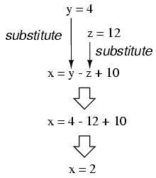 the substitution method. Take, for instance, our