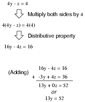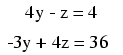 again to the two equations 4y - z = 4 and -3y +