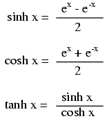 Note: all angles (x) must be expressed in units of radians for these hyperbolic functions. There are 2π radians in a circle (360o).