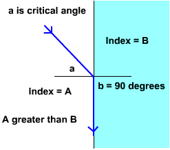 Internal reflection in glass of water (neglecting refraction from the glass)