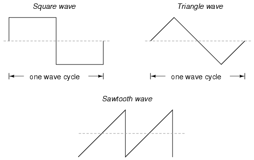 triangle, or sawtooth voltage/current waveforms, the