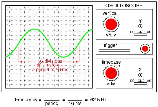 the oscilloscope screen and reciprocating that time value