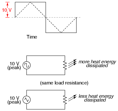 square wave peaking at 10 volts is obviously a greater
