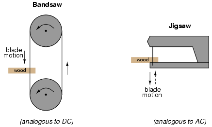 while the bandsaw uses a continuous motion of the blade to