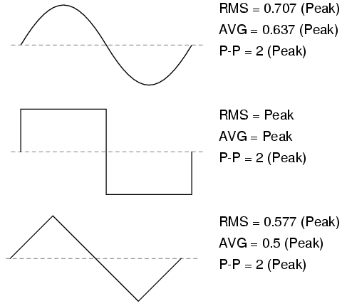 pure forms of these waveshapes. The RMS and average