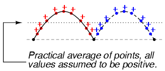 measure of a waveform's aggregate value, "average" is