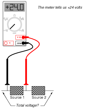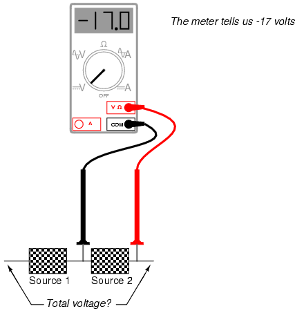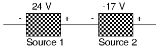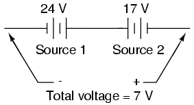 total voltage, so we add 24 volts to -17 volts to obtain 7