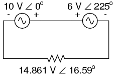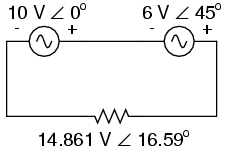 of 10 V ∠ 0o and 6 V ∠ 45o together to
