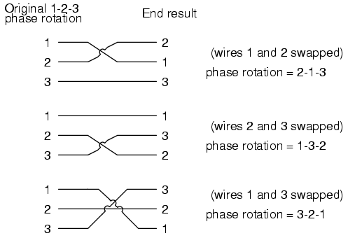 difference at all. Whether 1-2-3 or 3-2-1, the voltage and