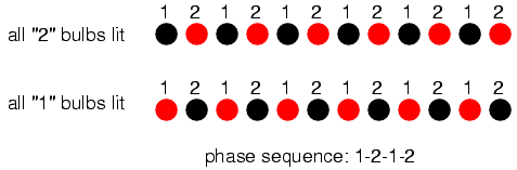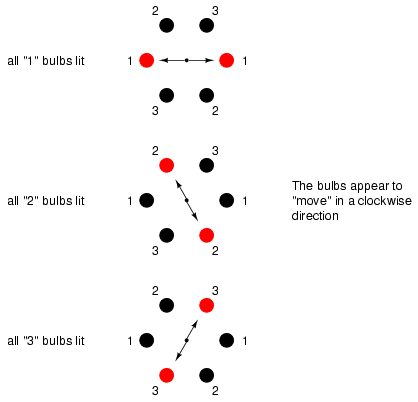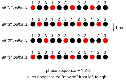 sequence shown), the bulbs will appear to "move" from left