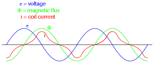(sine-wave shaped), due to the nonlinear B/H magnetization