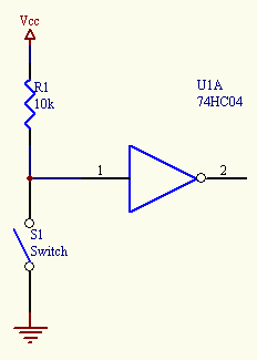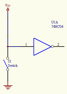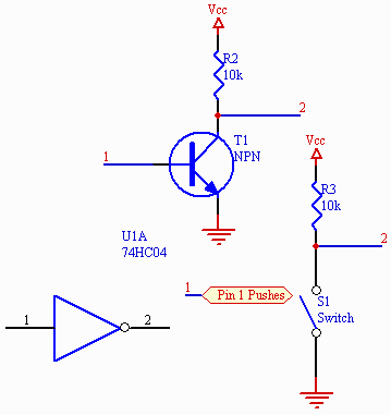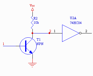 U2A's input pin. When T1 is on, T1 ties U2A's input pin