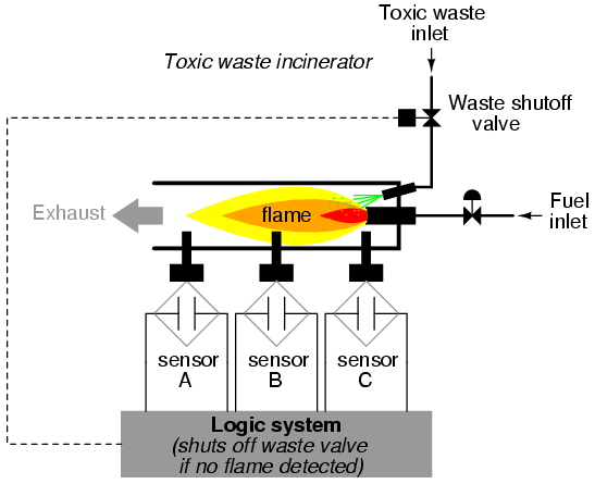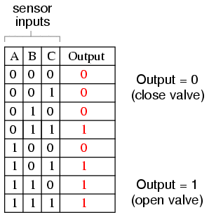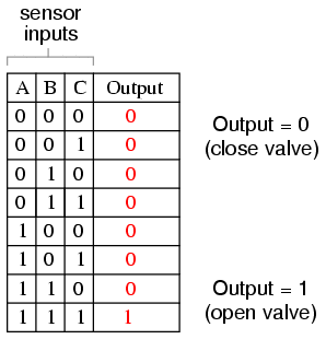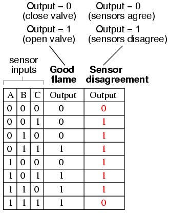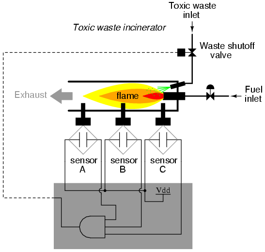 (inputs: 011, 101, or 110), or shut the incinerator down to be absolutely