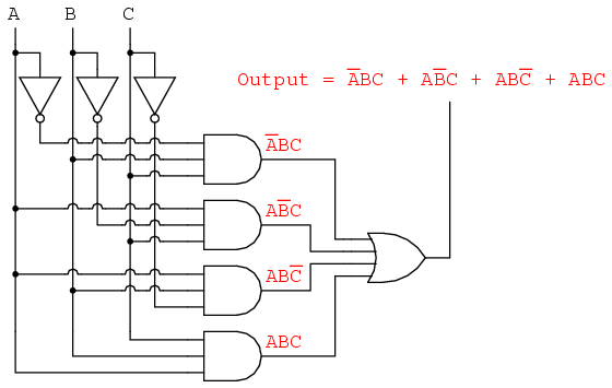 Now that we have a Boolean Sum-Of-Products expression for the truth