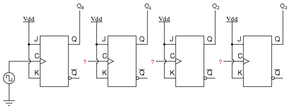 connecting the clock inputs to the Q outputs of the preceding flip-flops.
