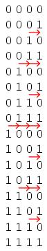 0000 to 1000, or from 7 to 6 to 4 to 0 and then to 8.