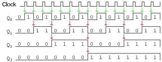 on the Q' output. In other words, each time the Q output of a flip-flop