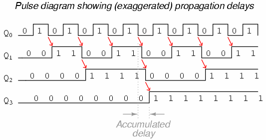 propagation delays between cascaded gates. When the Q output of a flip-flop